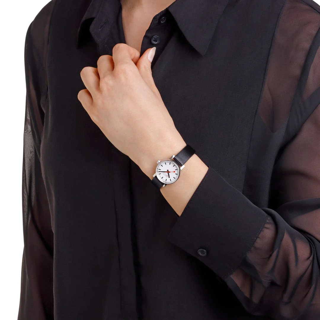 EVO2, Polished Steel, 26 mm, Black Vegan Leather